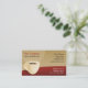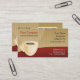 Business Cards with beige coffee cup on a dark red table. Custom text.