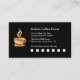 This coffee shop loyalty business card template a golden coffee cup graphic, customer loyalty check off box template, and organised design you can customise online. Designed for a coffee house, breakfast restaurant, or tea time boutique.