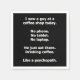 For the sarcasm lover in all of us. Check out this witty “I saw a guy at a coffee shop today. No phone. No tablet. No laptop. He just sat there. Drinking coffee. Like a psychopath.” design on apparel and gifts.
