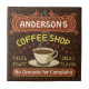 This coffee-themed tile is perfect for anyone who runs their own coffee shop or has a coffee theme in their home kitchen decor. Done in retro brown, orange, beige and yellow, this espresso / cappuccino inspired design features a cup on a saucer, two personalised text banners and the words "Coffee Shop / Fresh Roast / Great Flavour" in yellow.