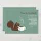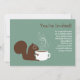 Cute Squirrel Party Announcement. This woodland squirrel enjoys a steaming hot cup of coffee. A fun invitation your guests will love. See Jenn's Doodle World for even more party supplies featuring this squirrely design.