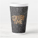Doodles Of Coffee Symbols On Black Background, With The Centre Coffee Time.