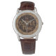 The watch looks really great! Very sharp and well done. The leather band is really nice, though for a man's watch I think it should be longer. Unfortunately, it isn't big enough for my husband's wrist but I will get a replacement because he is very excited to wear it!