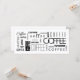 You can never have too much coffee. This greeting card features the word 'coffee' in various typography. Text can be personalised.