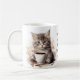 Adorable illustrations of cute kittens with a coffee cup accented with flowers, the text reads: "Mornings are for having coffee with my cat" and this can be changed to anything you like - Each side of the mug has a different kitten illustration - we offer 16 different mugs so you can mix and match creating a cute coordinated set as a lovely gift for a housewarming, Christmas or new kitten in the family.