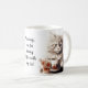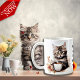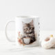 Adorable illustrations of cute kittens with a coffee cup accented with flowers, the text reads: "Mornings are for having coffee with my cat" and this can be changed to anything you like - Each side of the mug has a different kitten illustration - we offer 16 different mugs so you can mix and match creating a cute coordinated set as a lovely gift for a housewarming, Christmas or new kitten in the family.