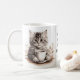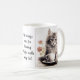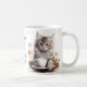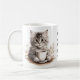 Adorable illustrations of cute kittens with a coffee cup accented with flowers, the text reads: "Mornings are for having coffee with my cat" and this can be changed to anything you like - Each side of the mug has a different kitten illustration - we offer 16 different mugs so you can mix and match creating a cute coordinated set as a lovely gift for a housewarming, Christmas or new kitten in the family.