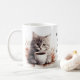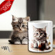 Adorable illustrations of cute kittens with a coffee cup accented with flowers, the text reads: "Mornings are for having coffee with my cat" and this can be changed to anything you like - Each side of the mug has a different kitten illustration - we offer 16 different mugs so you can mix and match creating a cute coordinated set as a lovely gift for a housewarming, Christmas or new kitten in the family.
