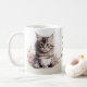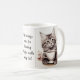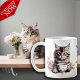 Adorable illustrations of cute kittens with a coffee cup accented with flowers, the text reads: "Mornings are for having coffee with my cat" and this can be changed to anything you like - Each side of the mug has a different kitten illustration - we offer 16 different mugs so you can mix and match creating a cute coordinated set as a lovely gift for a housewarming, Christmas or new kitten in the family.