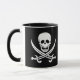This combo black and white mug has an image of a pirate skull on both sides of the mug.