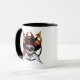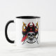 This combo black and white mug has an image of a pirate skull on both sides of the mug.