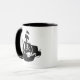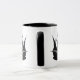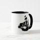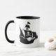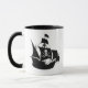 This combo black and white mug has an image of a pirate skull ship on both sides of the mug.