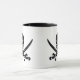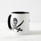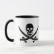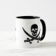 This combo black and white mug has an image of a pirate skull on both sides of the mug.