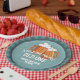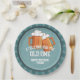 Featuring the classic saying "A cold one for the old one," these beer themed plates set the stage for a night of fun, laughter, and delicious beers. This birthday party plate is decorated in a blue and gold colour theme with a retro feel.