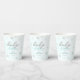 A simple, modern, elegant and chic gender neutral baby shower party personalised paper cup featuring a textured, winter white background, the word BABY covered in rhinestones (not real rhinestones, this is a digital effect) and in modern calligraphy script, modern typography and a few rhinestones covered snowflakes. A chic, timeless design for a future mummy who is celebrating her baby shower in the winter months, November, December or January or even beyond, as long as there is snow!