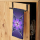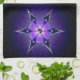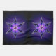 This chilly abstract was created from an Apophysis fractal turned into a six-pointed kaleidoscope. The design is overlaid with a silver-framed snowflake with inlaid deep blue, purple, and lavender set with round soft pink gems and accented with a deep pink jewel in the centre. The whole piece gives the effect of a soft, snowy light shining through a the black and midnight blue of a dark winter night.