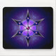 This chilly abstract was created from an Apophysis fractal turned into a six-pointed kaleidoscope. The design is overlaid with a silver-framed snowflake with inlaid deep blue, purple, and lavender set with round soft pink gems and accented with a deep pink jewel in the centre. The whole piece gives the effect of a soft, snowy light shining through a the black and midnight blue of a dark winter night.