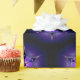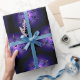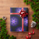 The design is overlaid with a silver-framed snowflake with inlaid deep blue, purple, and lavender set with round soft pink gems and accented with a deep pink jewel in the centre.