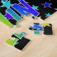 This fun, vibrant, birthday-themed jigsaw puzzle design features the message "HAPPY BIRTHDAY, COLIN" with the characters having a colourful rainbow spectrum inspired gradient pattern, along with an exciting star field background pattern. A vibrant puzzle like this might be a fun way to acknowledge the birthday of somebody named Colin. [~Z0000468]