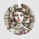 Personalised Christmas ornament. Collage art. Beautiful lady with colourful flowers in her hair and book pages all around her. Generativecontent