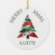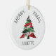 Features a collage Christmas tree in a colour palette of red and green. Personalise with a name on the front, and a “from” name on the back.