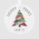 Features a collage Christmas tree in a colour palette of red and green. Personalise with a name on the front, and a “from” name on the back.