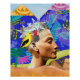 Unique digital collage with egyptian face, floral pattern, flowers, abstract shapes, pyramids, palm tree. Colourful modern collage art print for your home decor, your home rooms, wall art. Artistic blue print for women, artists, art lovers, mothers, friends, new home owners, decorators, interior designers. Art gift poster glossy for christmas, birthdays. Original artwork from Mwanga design