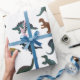 This kid-friendly wrapping paper features a collage of photos of plastic toy dinosaurs in assorted colours. It's perfect for wrapping up gifts for young dinosaur fans or for adding a touch of nostalgia to presents for those who are too old for playing with toys.