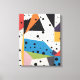 A fun and lively design of coloured paper shapes collage with black dots.