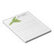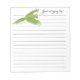 A beautiful Australian green parrot flying note pad saying " Just winging by..."