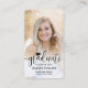 For family and friends who would like to give a cash gift to the graduate, a cute "College Pizza Fund" card with a scannable QR code provides a convenient mobile payment app option. The small business card size makes these enclosure cards easy to include with graduation announcements, set out at a graduation party, or hand out upon request. People who prefer contactless payment will appreciate the option to gift money from their digital wallet via their smartphone or tablet. The photo and wording on this template are simple to personalise and the colours are easy to change using the Zazzle design tool. The modern black and white design features handwritten style script calligraphy with a mortar board cap, elegant classic typography, and one photo of your choice, such as a senior picture or image from the commencement ceremony. This graduation enclosure card makes a unique and funny addition to a special day celebration. Congratulations to the graduate!
