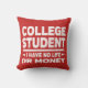 College Student I Have No Life or Money Custom Throw Pillow for college students. Decorate a dorm room with our funny college student throw pillow. Change the colour to any colour you wish.