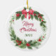 This pretty Holiday ornament features a beautiful watercolor portrait of a Collie dog. The dog is framed with a holly and red berries wreath, with a bright red bow at the top. The back of the ornament has the same red bow wreath, with two text fields for you to customise. Visit Dog Village to see more Collie images and products.