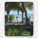 A colourful bike leans against a Palm tree, the ocean can bee seen in the background and yellow flowers in the front. Photographed in Florida. --- Photograph is copyrighted, by photographer: Christina Spiegeland.