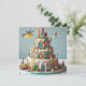 FUN FOR KIDS, COLORFUL BLOCKS TOY THEMED KIDS BIRTHDAY LAYER CAKE ON THE FRONT OF THE CARD. COMPLETELY EDITABLE COPY ON THE BACK.