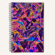 This is a notebook. Added is a colourful in dark tones of a psychedelic design and pattern.