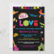 Colourful Taco Bout Love Mexican Fiesta Couple's Shower - This festive and colourful couple's shower invitation is perfect for the couple wishing to have a taco party celebration with margaritas! Features colourful watercolor images of a taco, margarita, pinata, Mexican bunting banner, sombrero, maracas, cactus, guitar, limes, and nachos in shades of blue, pink, red, green, yellow and purple, and a black background.