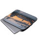 The sleeve is made of nice feeling material and seems very durable. I'm not sure how easy it'll be to clean, but the construction seems sound and the fabric is quick thick. I also like the double zipper. The printing is lovely and appears durable. The white on black contrast is nice, and the design very elegant.