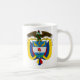 The coat of arms of Colombia contains a shield with numerous symbols. Perched on top of the shield is an Andean Condor holding an olive crown and the condor symbolising freedom. The national motto, Libertad y Orden (Spanish for Liberty and Order), is on a scroll in between the bird and the shield in black font over golden background. The condor is depicted facing front with his wings extended and looking to the right.