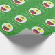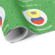 Colombian Flag abuela Christmas angel personalised wrapping paper. Design features a grey haired angel, dressed in the flag of Colombia inside a white circle of squiggly squares. Background is green squiggly squares. Personalised with name, year, and holiday, or whatever you wish. Wrap your holiday gifts and share your heritage or travel plans at the same time. Share your love for your abuela, too.