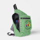 Personalised sling bag shows the Colombia, Ireland, and United States of America shamrock featuring a different flag in each leaf. On top, in circular, dark green, Celtic style letters are the words THREE CULTURES. On the bottom, in similar lettering, are the words ONE YOURNAME. Place your name on the appropriate place for a look. Need a personalised gift? Just add someone else's name. All of this design has a background of light green squiggly squares. Designed to celebrate St. Patrick's Day, 4th of July and Colombian holidays. Great for back-to-back school or travel needs.