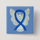 Colon cancer awareness uses a blue ribbon. The awareness pin features the painting of a blue awareness ribbon angel on a custom button pendant. Blue awareness angel ribbon art lapel pins or buttons can be customised with personalised messages to make great cause buttons for fundraiser pendants for cancer or other causes, awareness pin gifts, or other special pendant events or awareness lapel pin for cause's occasions.