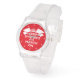 I only have one complaint. I ordered the watch with clear case and strap, and what was sent was white case and strap. I'm going to keep it because 1) it looks very nice in white, and 2) it would take too long to get a replacement made and sent in time for my occasion. Aside from the mix up with the color, the watch does look very good in white. The purple dial is actually sparkly which did not show in the online images. That was a nice surprise. If you like Swatch watches this is very similar to those. It's 33.6mm in diameter, 10.5mm thick, and 40.6mm lug to lug. Stainless steel case back says 3ATM/30m WR, so no swimming or showering or submerging this one. If you like Woodstock, this is a great choice.