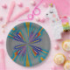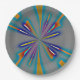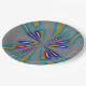 A vibrant starburst of color radiates from the center, with smooth transitions of orange, blue, purple, yellow, and cyan against a muted grey background. The symmetrical composition evokes energy, motion, and visual harmony — like a chromatic pulse expanding into space. This artwork celebrates dynamic balance, digital elegance, and the emotional power of color.
