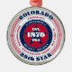 Show your state pride this holiday season with this unique Christmas ornament dedicated to Colorado, the 38th state. It has red, white, and blue patriotic colours with a circular typography design on a white background. The text includes facts about the state, such as its name, capital, state abbreviation, region, time zone, geographic coordinates, the year of its statehood, and its resident's name. It's a great gift for those who wish to celebrate their state or for those who are feeling nostalgic about their home state.