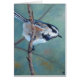A cheerful little mountain chickadee perches on a twig in this fine art image from an original oil painting by award winning artist Debra Mickelson. Predominant colours in this painting are blue, green, and brown. The inside is left blank for your own message.