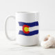 This Wavy Flag of Colorado Mug is also available on Men's & Women's T-Shirts, Shirts, Tees, Buttons, Stickers, Keychains, Mugs, Mousepads, Hats, Tote Bags, Gifts & more. Don't forget that you can change the size, colour or style on most products or make the flag design bigger or smaller by using the "Customise" feature.