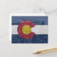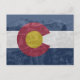 This graphic features the Colorado state flag imposed on a vintage postcard of Pikes Peak.