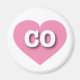 This magnet features a cool, pink heart containing the bold, white, upper case letters CO, the official abbreviation for Colorado, the centennial state.