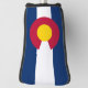 This golf driver cover features the distinctive and colourful red, white, blue and gold Colorado State Flag, with the yellow sun image encircled by the red block letter C on a blue and white striped background.